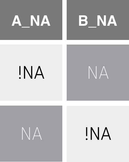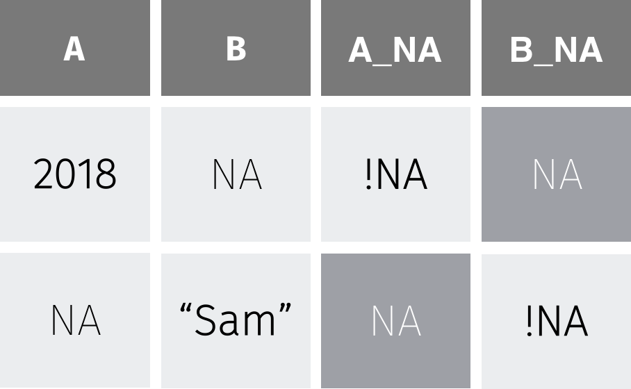 Values are missing (NA) or not (!NA)