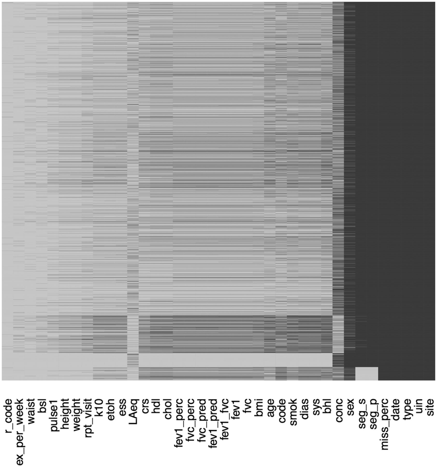 When you first get a dataset, it can be difficult to get a visceral sense of where the missings are.